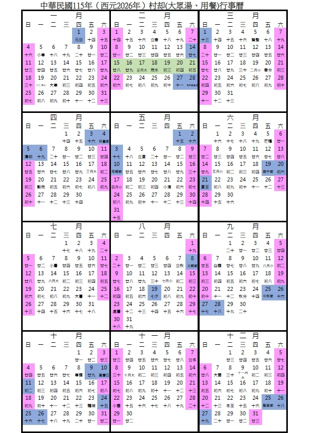 2026【大眾湯、用餐】平/旺/假日定義表